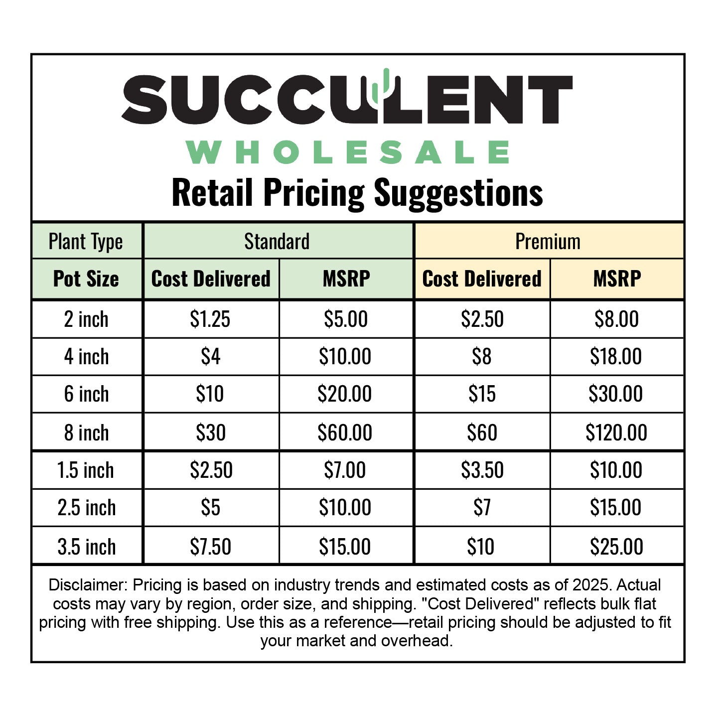Explore our Succulent Wholesale Size Guide. From 2-inch starters to 8 inch statement plants, find the perfect sizes to stock your shop and grow your business.